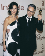 | Howard Shore '69, Oscar in hand, arrives at a post-awards show party with his wife Elizabeth |