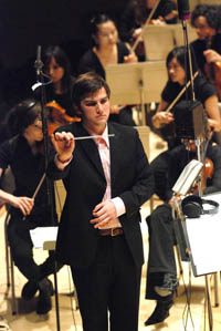 Chimera was everything Vidal and Dzialowski were looking for in a final project preceding their graduation in May. Conducted by Vidal on the stage of Boston's Symphony Hall, the recording session was the culmination of months of work by an all-student team. Vidal composed the music, and Dzialowski oversaw the selection of the film, recruitment of the musicians, scheduling of the entire production, and coordination of a vast array of tasks with a crew of Berklee students. Their team handled everything from preparing the scores to press coverage.