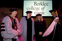 In his acceptance remarks, Eastwood thanked President Brown and made sure his California audience noted that the honor was coming from Berklee College of Music in Boston, not the University of California, Berkeley.