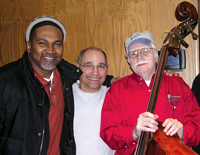 | From the left: Lenny Stallworth, John Repucci, and Timothy Swarbrick '64 at the first annual bass reunion | |