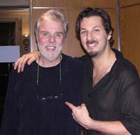 | From the left: Bass Department Chair Rich Appleman and bass reunion guest artist Bryan Beller '92 | |