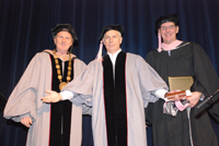 In awarding Guest the honorary degree, President Roger Brown cited his work as an actor and director of seven films, and his 2003 Grammy Award for the title track for A Mighty Wind. "I've been very fortunate. I get to make films, make music in films, and play stadiums wearing a wig," Guest said as he accepted the degree. "Wow, this is really difficult to believe. Thank you so much; this is an amazing honor."