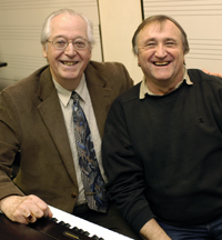 | Songwriting Chair Jack Perricone (left) and Associate Professor Jon Aldrich. "The tools that we teach are general enough to be applied to many styles," says Perricone. | |