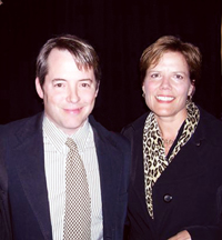 | Associate Professor Gaye Tolan Hatfield (right) and actor Matthew Broderick after the premiere of Finding Amanda at the Tribeca Film Festival. Hatfield wrote and sang music for the film. |