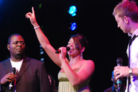 | From the left: Phillip Ferrell, Denise Hudson, and Jonathan Carr. With her soulful rendition of "Everything Must Change," Hudson brought the audience to its feet during the September 5 convocation concert. Ferrell and Carr also drew vigorous applause for their solo numbers. |