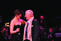 | Paula Cole '90 and Burt Bacharach share a moment during the March 1 concert devoted to Bacharach's music at the Berklee Performance Center. | |
