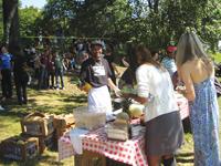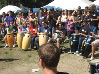 | A drum circle welcomed students, faculty, and staff members to the opening day barbecue at Mother's Rest Park along the Fenway. | |