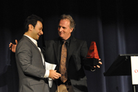 | Roger Brown (right) presents Panos Panay with Berklee's Distinguished Alumni Award at the fall convocation. | |