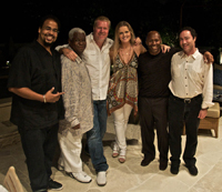 | Berklee today Celebrates 20 Years In late July, Berklee today marked its 20th anniversary at the Pacific Palisades home of Berklee Trustee Charles Hirschhorn and his wife, Cynthia. President Roger Brown made a presentation to Kevin Eubanks, who was featured on the cover of the July issue. Invited guests included L.A.-area alumni who had been featured in cover stories or in special spotlight articles over the past 20 years. |