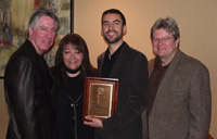 | From the left: Alan Silvestri, Doreen Ringer Ross (BMI's V.P. of film and TV relations), Pablo Gomez Trujillo, and Film Scoring Chair Dan Carlin. A film scoring major, Gomez was recognized for academic excellence during BMI @ Berklee Day, where Silvestri addressed students in a presentation hosted by Carlin in the Berklee Performance Center. | |