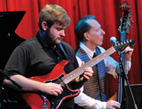 | Scholarship recipient Peter Flom (left) jams with trustee Dean Goodermote | |