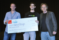 | Walking Away a Winner by Margot Edwards As part of Rethink Music, Berklee College and the Harvard Business School ran a music industry business model competition seeking proposals for businesses that provide novel ways to stimulate and monetize creativity in the music industry. After receiving hundreds of entries, the judges narrowed the field to three finalists who presented their plans on April 27. As the final event of the conference, NuevoStage was named the winner of the competition. Boston-based NuevoStage was cofounded by Harvard MBA candidate Maxwell Wessel and Dartmouth College graduate Chris Allen and was awarded a $50,000 cash prize from Berklee. The company will also receive $10,000 in in-kind legal services through a donation by Duane Morris LLP. NuevoStage enables artists and fans to work together to book venues on nights when these facilities would otherwise be empty. By proving there is demand for a performance by a particular artist through advance ticket sales on its website, NuevoStage can open stage space that otherwise would not have been profitable. NuevoStage's mission is to help connect venues, artists, and fans in hopes of putting more musicians on stage, bringing more fans to venues, and providing more live-music experiences. "More than the check, the award from the music industry and Berklee especially will improve our chances of making a huge impact as we go out and market our business," said cofounder Wessel. "Our company is made up of tech heads and MBAs. The award is like a stamp of approval and will help us establish our credibility with club owners and others in the industry." Eliot Hunt, a Berklee alumnus who founded BigLife Labs Inc. to facilitate the online collaboration of music performances, was the first runner-up and received a $5,000 prize. Ian Kwon, creator of Fanatic.fm, an album-publishing platform connecting bands with brand sponsorships, was a finalist in the competition. The proposals were evaluated using three criteria: value creation, innovation, and viability. A panel of venture capitalists, faculty members from Harvard Business School and Berklee, and industry executives reviewed the live presentations to determine the winner. "In the initial phase of judging, we reviewed nearly 200 submissions," says Allen Bargfrede, the executive director of Berklee's Rethink Music Initiative and a Berklee Music Business/Mannagement Department assistant professor. "It was very difficult to narrow them down to a single winner. Many of the proposals showed real promise, but NuevoStage did the best job of solving one of the biggest problems of being a developing artist: booking live performances. And they communicated their product very effectively." Margot Edwards is a publicist in Berklee's office of media relations. |