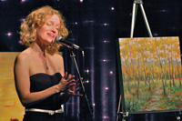 In the meantime, I also wrote some jazz-inspired songs and recorded my first solo album featuring several Berklee alumni. Once I got the CD in my hands, I had this nagging feeling that there was something more I was supposed to do. I remembered reading an article about a duo that wrote songs and found visual artists to interpret their music. I wanted to do something similar, but how would I find the artists? Why would they agree to help me? Could I tour with the art?