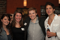 | From the left: Alyssa Canino, Erika Cole '10, Alex Wright '10, and Mitch White '10 enjoy the Nashville holiday party at Flyte in December 2011. | |