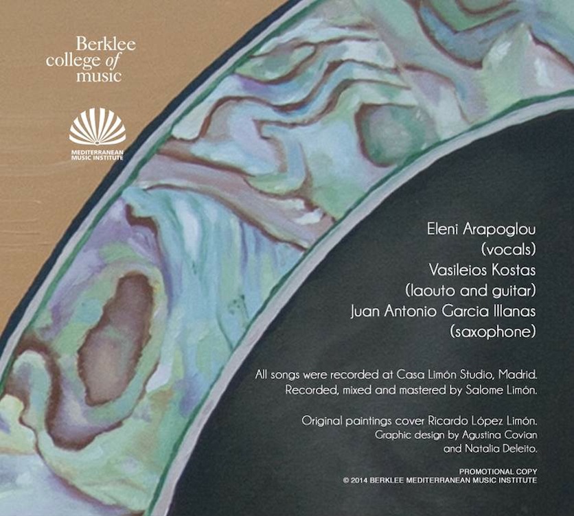 Vocalist Eleni Arapoglou's music features contemporary compositions strongly grounded in traditional Greek music. On this record, she is accompanied by Greek laouto player and composer Vasileios Kostas and Spanish saxophonist Juan Antonio García Illanas. Eleni Arapoglou is a dynamic singer from Athens, Greece who obtained a professional diploma in vocal performance at Berklee and who has, with her band, opened for the Roots. Among her many notable performances across the U.S. and Europe, Arapoglou has performed with Alejandro Sanz at the Latin Grammys.
