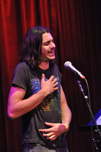 For Bonneville, a second-semester vocalist from Minneapolis, Minnesota, the class and the slam have helped enhance her songwriting. "You're not up there with your instrument or your band. You're just there with your voice and your words," she said. "You have three minutes to wow this audience. There's so much energy and emotion. You're pouring out your soul. You get pushed out of your comfort zone, which ultimately makes your comfort zone bigger. You push out your boundaries. As a musician, that's what you need to do. As a singer/songwriter, as a poet, these are the kinds of experiences that only broaden your artistic horizons. As a songwriter, it's providing me with a different paradigm of how to see things. . . . It's opening up how I see things."