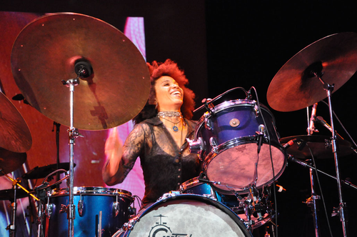 Cindy Blackman, best known for her work with Lenny Kravitz, keeps the beat.