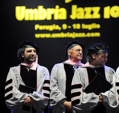 In Umbria, Berklee awards its newest honorary doctorates to Stefano Bollani, Renzo Arbore, and Horacio "El Negro" Hernandez.