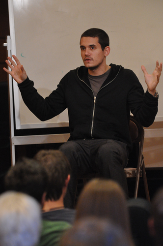 John Mayer's recent trip to Berklee included a return to the classroom—several classrooms, in fact. In two of the classes, we were able to get a closer look to see how Mayer was interacting with students.