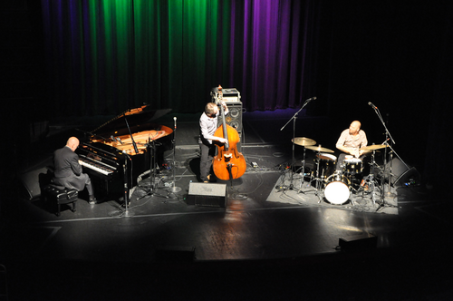 Andy Milne and Dapp Theory fused street-smart poetry with hard-swung polyrhythms for an audaciously variable, moody set with rapper John Moon's snappy "After the Fact," Aaron Kruziki's searing reeds—sax, clarinet, duduk—and the leader's astute piano.
