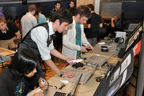 Guests experiment with new technologies at the first Music Therapy Technology Symposium, 2010.