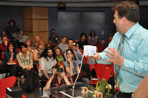 Professor Richard Boulanger demonstrates a product to the group during the first Music Therapy Technology Symposium.