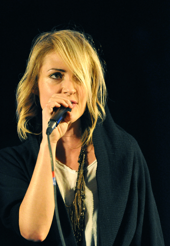 Emily Haines of the band Metric performs at the April 25 Harvard conference kickoff.