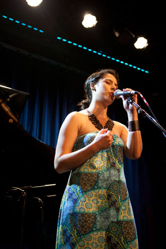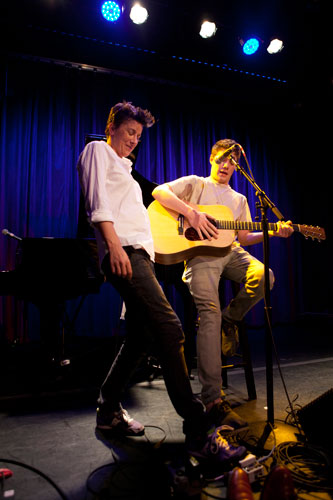 Eight of the artists performed at Cafe 939 one night in early August, one of three shows directed by singer-songwriters Melissa Ferrick '90 and Sally Taylor, and assisted by Berklee faculty members, who mentored the students in songwriting in preparation for the concert. The students brought their finished songs forth, telling tales of loneliness, home, and relationships, among other songworthy fodder.