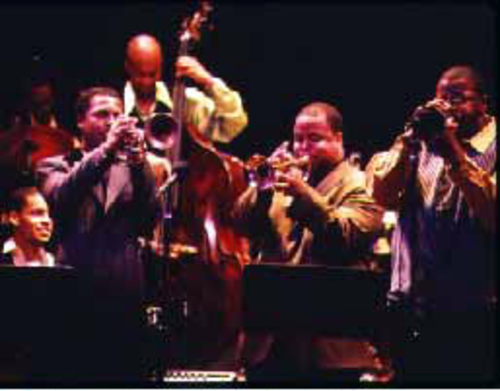 Student trumpeter Jeremy Pelt (right) trades fours with Hargrove (left) and Payton.