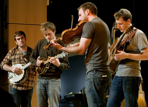 The Punch Brothers break it down: (left to right) Pikelny, Thile, Gabe Witcher, Chris Eldridge; (hidden) Greg Garrison