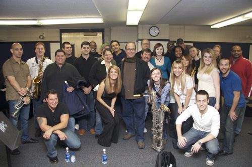 From left: student drummer Jake Cohen, ToP leader and saxophonist Emilio Castillo, student pianist Dane Farnsworth, and ToP keyboardist Roger Smith.