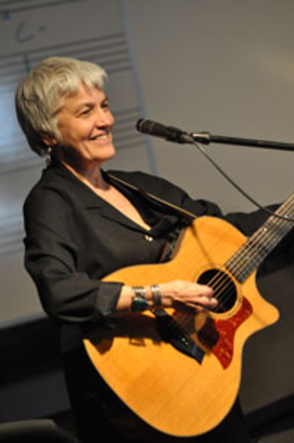 Cris Williamson plays the guitar during her residency at a Singer/Songwriter Workshop.