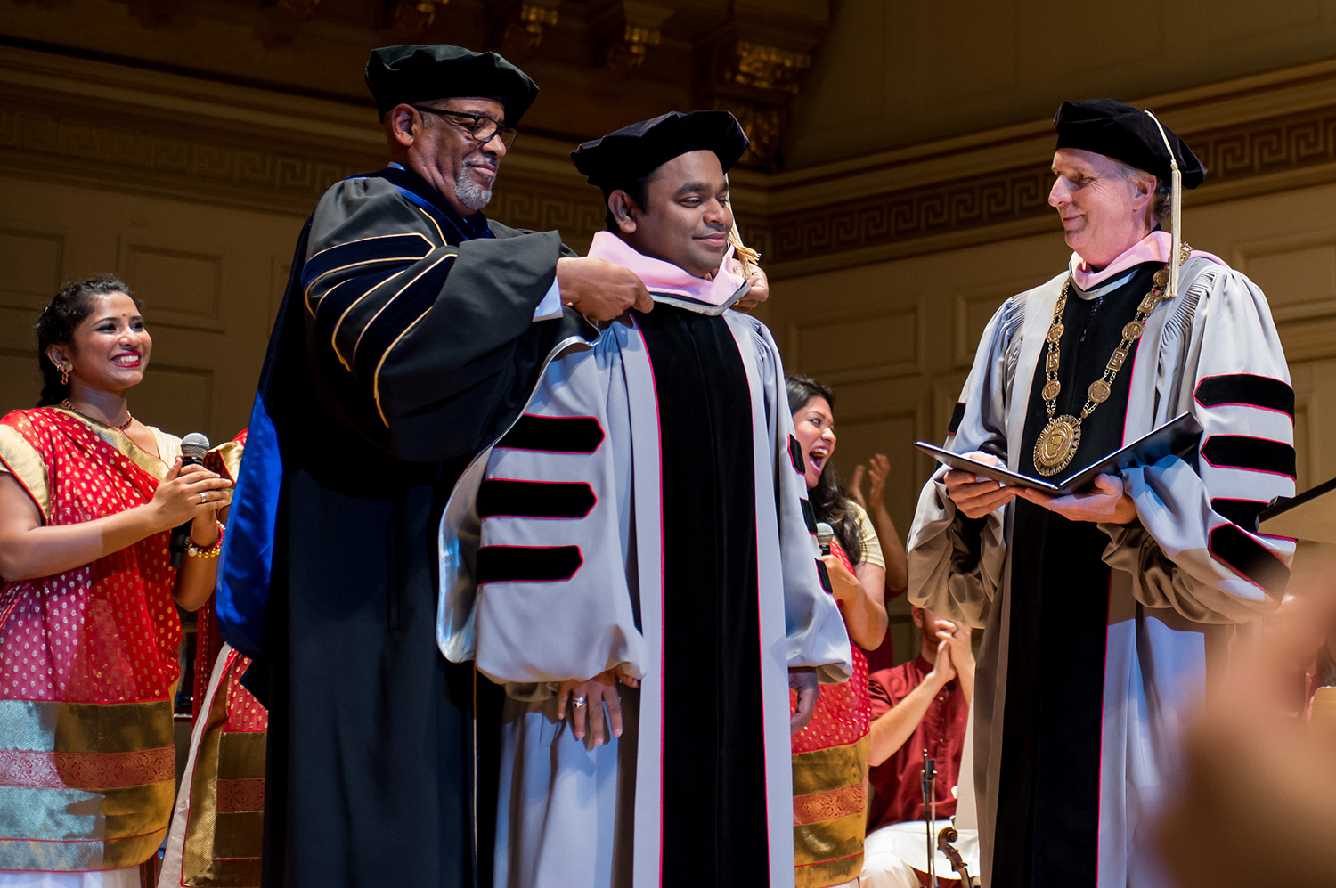 In the honorary doctorate presentation, president Roger Brown noted that Rahman’s music transcends national borders. “His capacity to draw from a vast global palette has birthed thrilling collaborations with artists such as Nusrat Fateh Ali Khan, Andrew Lloyd Webber, and the Black Eyed Peas, just to name a few,” Brown said.