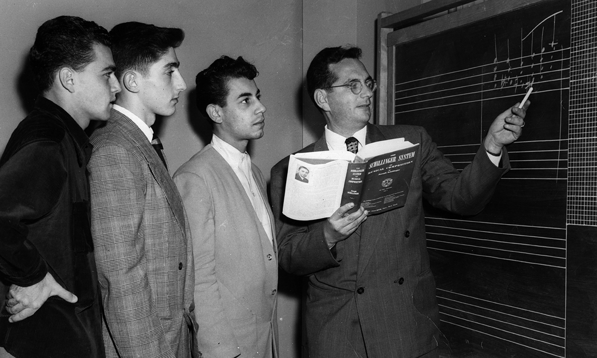 As the 1940s wound to a close, Berk didn’t need to look too hard for evidence that his vision for teaching music through a contemporary lens was coming into sharper focus. Admission counts for Schillinger House now numbered over 500 students, and the school was featured regularly in the pages of DownBeat and Metronome. While these early years tend to be described as mostly jazz-focused, new majors were added this year in music education, arranging, composition, and applied music. Combined with the earlier additions of training for dance orchestras and TV/radio jingle composition, you have a school well-positioned not to follow an industry, but to exist and grow alongside it. And one of the most significant evolutions in 1949 was Miles Davis’s version of Cleo Henry’s “Boplicity,” (eventually appearing on 1957’s seminal Birth of the Cool). Despite the song title’s nod to bebop, “Boplicity'' was warmer and less aggressive than bebop. With its focus on tonal color and subdued rhythms, it helped set in motion the emergence of cool jazz, a form that would be perfected in the decade to come by Davis and greats such as Gil Evans, Charles Mingus, Dave Brubeck, Stan Getz, and future Berklee faculty member John LaPorta. —Bryan Parys