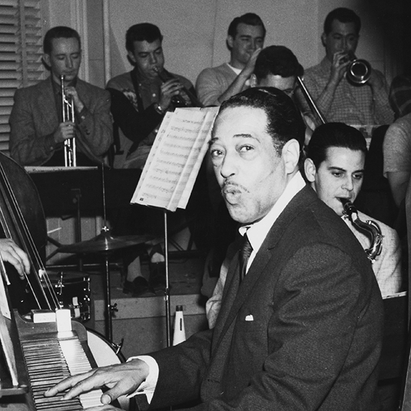 The year that Duke Ellington was inducted into the DownBeat Hall of Fame, he stopped by Berklee to sit in with students as they rehearsed their annual concert, which featured their arrangements of his music, in recognition of the DownBeat honor. The tribute prefigured what would become Herb Pomeroy’s course Arranging in the Style of Duke Ellington and focused on the jazz legend’s “philosophical approach to the band” in which all members were allowed to explore their styles and express themselves fully. That same year, 1957, Ellington and his orchestra released the album Ella Fitzgerald Sings the Duke Ellington Song Book, with Fitzgerald. The record included the tune “Satin Doll,” which Ellington would return to Berklee to perform in 1971, when the school awarded him an honorary doctorate of music, the first that Berklee had ever bestowed. Lawrence Berk introduced Ellington by saying that “there is no aspect of modern American music and jazz that has not felt the impact of his unique talent.” —Kim Ashton
