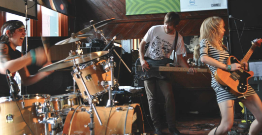 Members of the group Ume played at the SXSW Music and Media Conference in Austin, TX, in March. From the left: Rachel Fuhrer ‘99, Eric Larson, and Lauren Larson