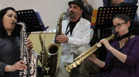 From the left, saxophonists Partricia Zarate, BGJI outreach coordinator; Marco Pignataro; and Lihi Haruvi.