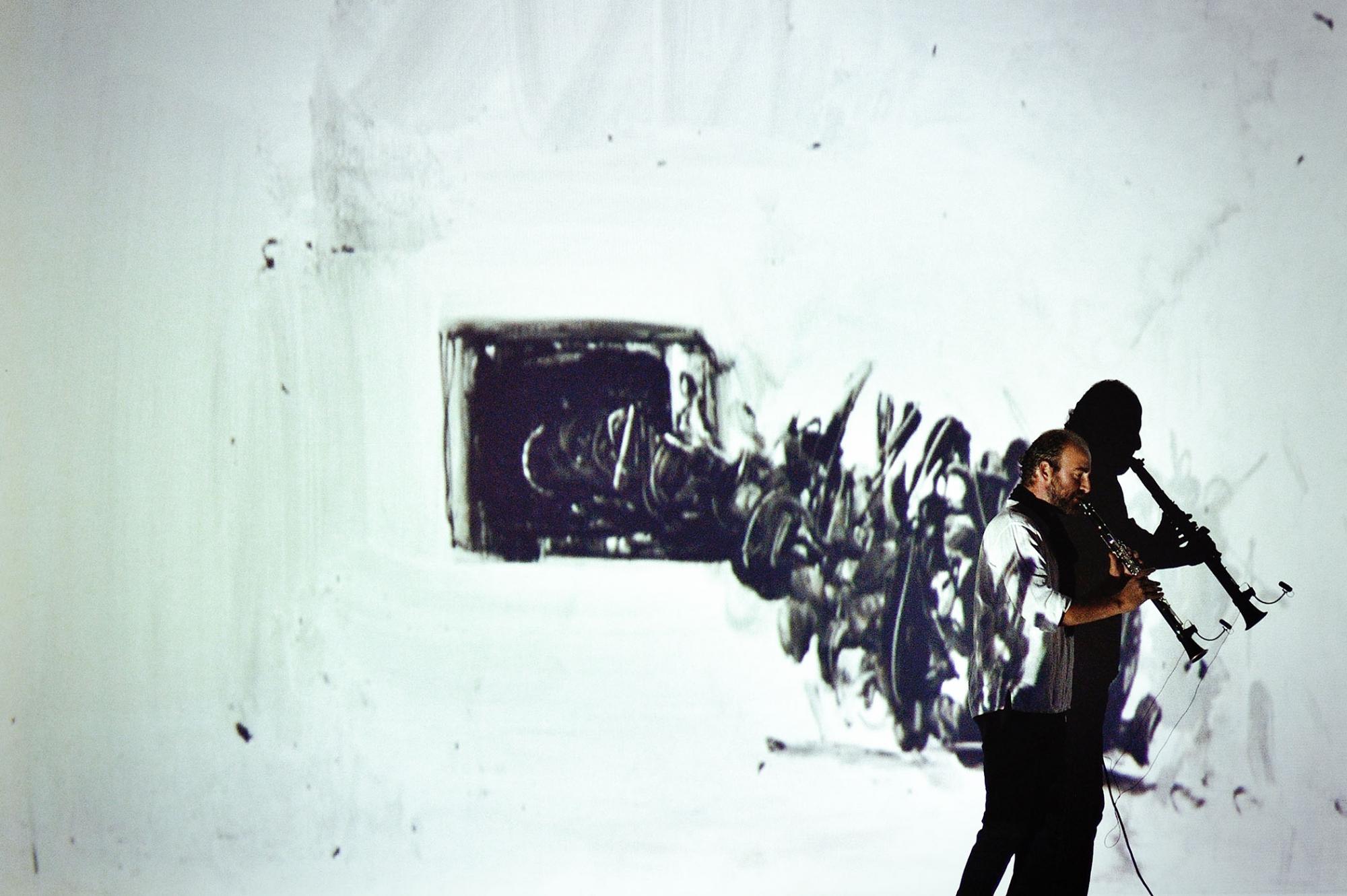 Syrian clarinetist and composer Kinan Azmeh during a live performance of Home Within