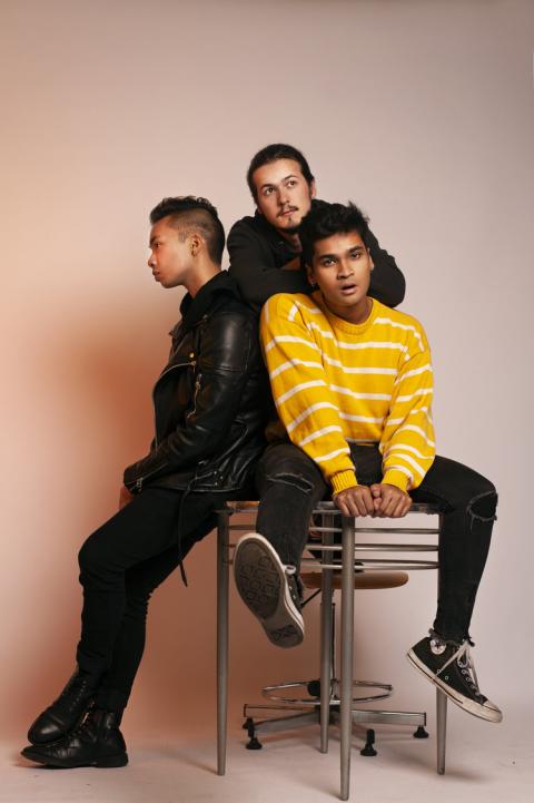 Roy Juno is the collective name shared by three Allston, Massachusetts–based producers/instrumentalists. Led by lyricist/frontman Sayak Das B.M. ‘18, Roy Juno blends themes like struggling with identity, glorifying false heroes, and celebrity ego death, with sound design that transports the listener to an era where synthesizers were the vanguard of sensible pop. Rhythm section Henri Young B.M. ‘17 (bass/synthesizer) and Josh Parra ‘17 (drums, auxiliary sampling) pride themselves on seamlessly blending a wide range of backgrounds, resulting in a truly modern pop sound.