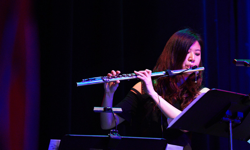 Student flutist Ying-Ting Luo, who came to Berklee from Taipei, Taiwan, plays an elegant solo on Horta's "Beijo Partido," which was arranged by student composer Aida de Moya.