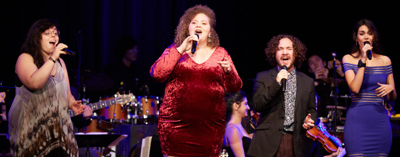Student vocalists Valentine Komissarouk (Kfar Shmaryahu, Israel), Mirella Silva (Recife, Brazil), Jorge Giron Vives (Dallas, Texas), and Maria Del Mar Fayos Oliver (Barcelona, Spain) performed an a capella arrangement from Tsunenori "Lee" Abe, associate professor of contemporary writing and production, leading into Horta's "Pilar/Igreja do Pilar."