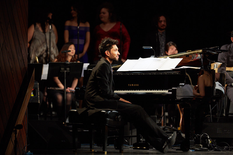 Thiago Vitorio (shown) of Barra Mansa, Brazil and Jiwon Kwon of Seoul, South Korea accompanied the Berklee student band on piano throughout the concert, providing solos and dynamic interpretations of Horta's music.
