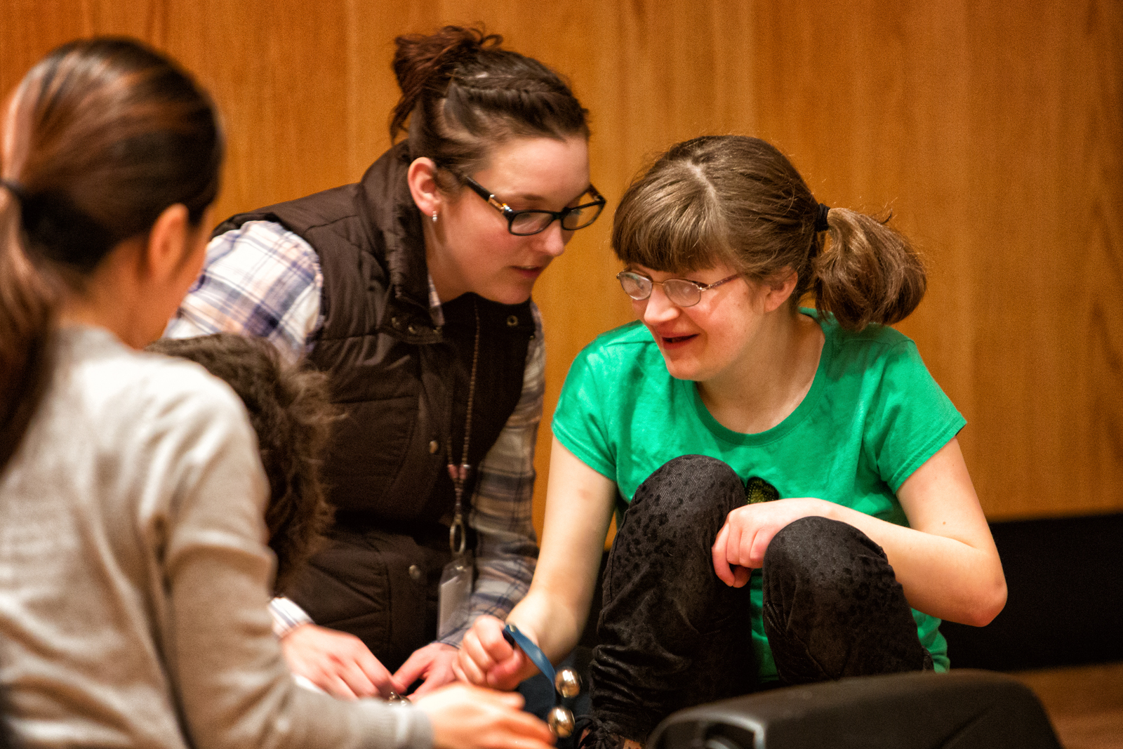 Kelsey Crawford, the Movement’s outgoing president—a week later, she would graduate with the class of 2015—explained that the goal of the Perkins workshop was to help the school establish a deeper commitment to assistive music programming.