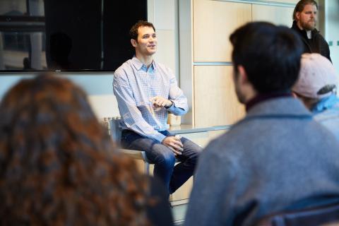 Students take photos with Djawadi after the Q and A in the Eisenson Room.