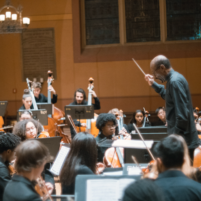 Julius Williams conducts members of the Berklee Contemporary Symphony Orchestra.