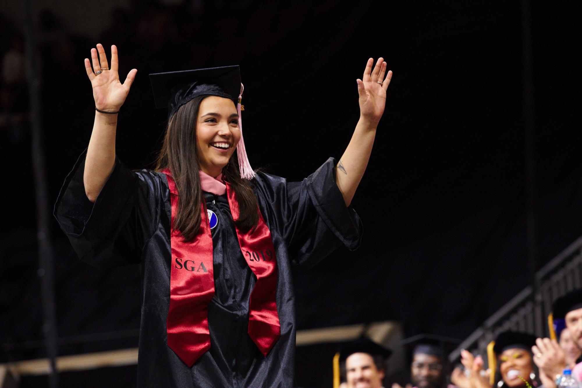The student speaker was Caroline Vermillion, a music business/management major from Greenville, South Carolina. “As each of us enters the next chapter of our lives, we must strive to identify and embody our purpose before we can hope to follow in the footsteps of these musical and creative legends,” she said. “We must hold each other accountable to perform, and create, and teach, and innovate, and heal authentically and with purpose.”