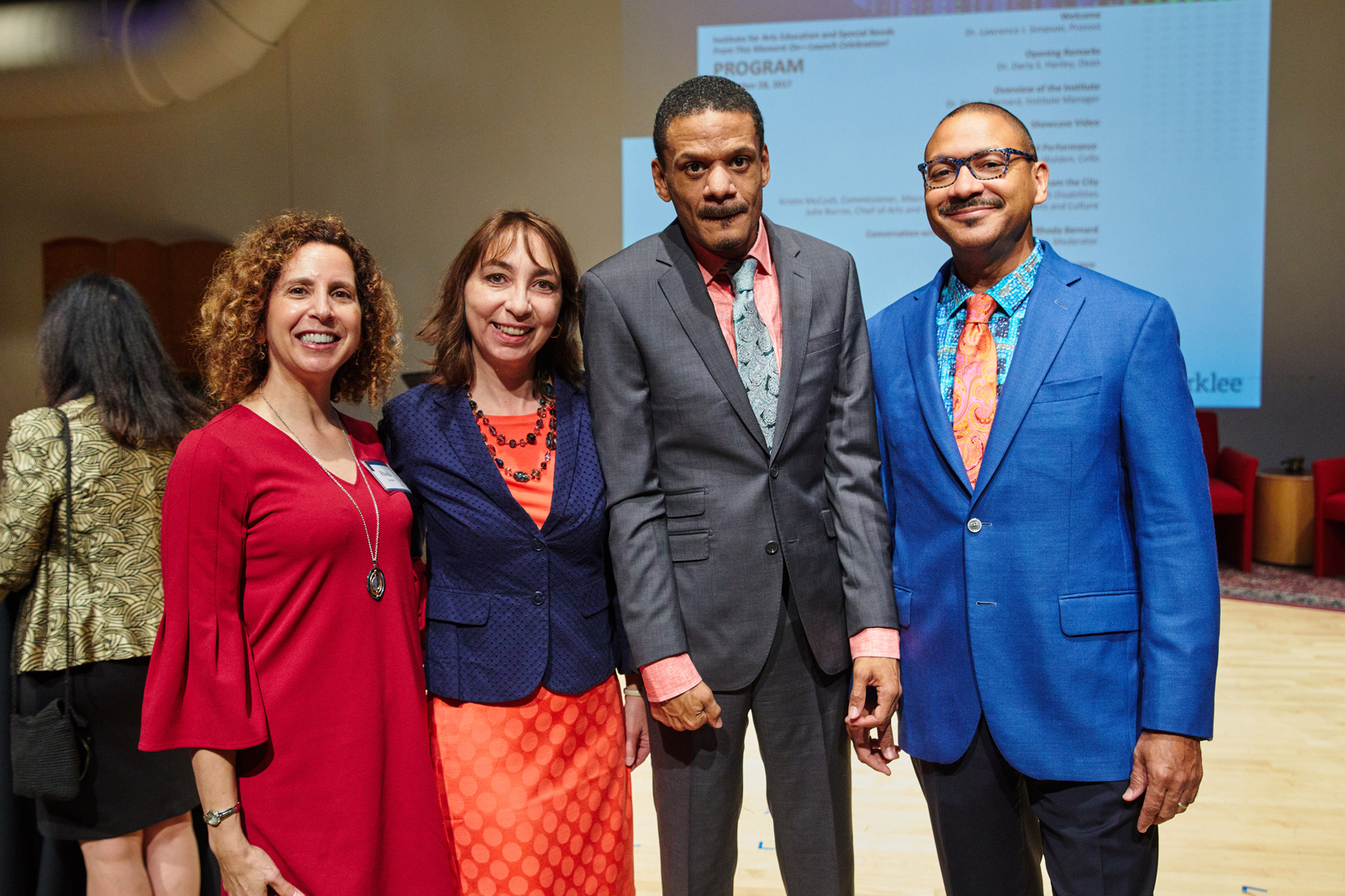 From left: Rhoda Bernard, managing director of the Berklee Institute for Arts Education and Special Needs; Darla Hanley, dean of the Professional Education Division; Mboya Marsalis; and Delfeayo Marsalis B.M. '89