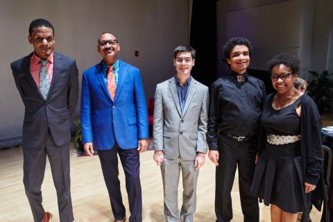 From left: Mboya Marsalis, Delfeayo Marsalis, alumnus Matt Savage, student Adam Walden, and Rosanne Walden