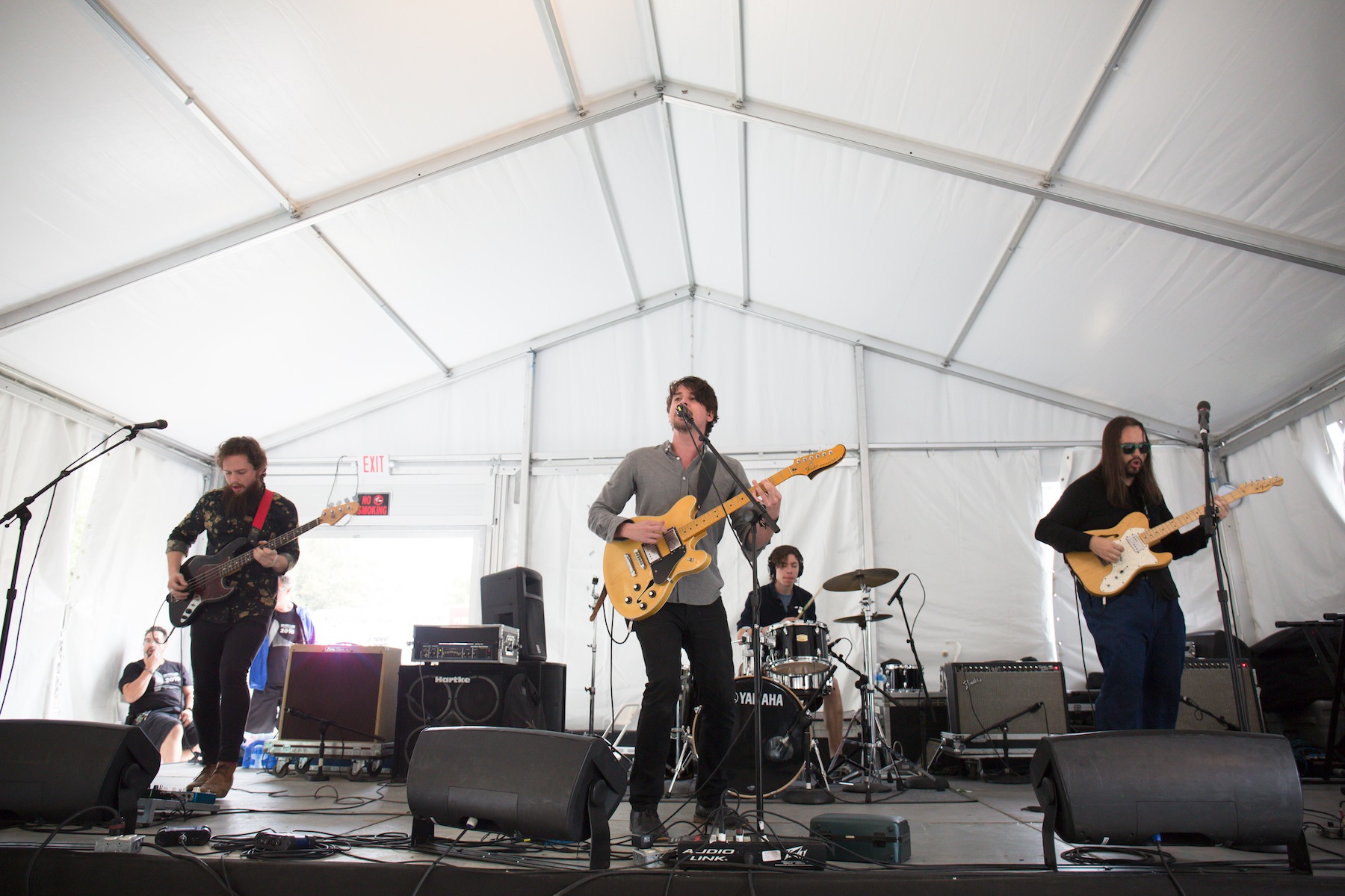 The party featured performances by up-and-coming alumni and students, including all-female garage rock trio Lady Pills (HRR), modern pop act M+E (HRR), electro-pop duo mar | co, and psych-rock project Plastic Waves—all from Boston. Seattle noise pop band Great Grandpa, Los Angeles dreamy fuzz pop trio IAN, and Brooklyn electronic rock quintet Rann were also featured.