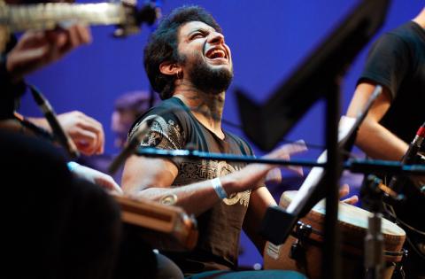 On March 8, the ninth annual Berklee Middle Eastern Festival celebrated the music of Armenian jazz pianist and multigenre composer Tigran Hamasyan in a concert that featured him performing with students at the Berklee Performance Center. Produced and directed by Christiane Karam, associate professor in the Voice Department, the show was a combined effort that brought together the Berklee Middle Eastern Fusion Ensemble, the Pletenitsa Balkan Choir, and the Berklee World Strings.